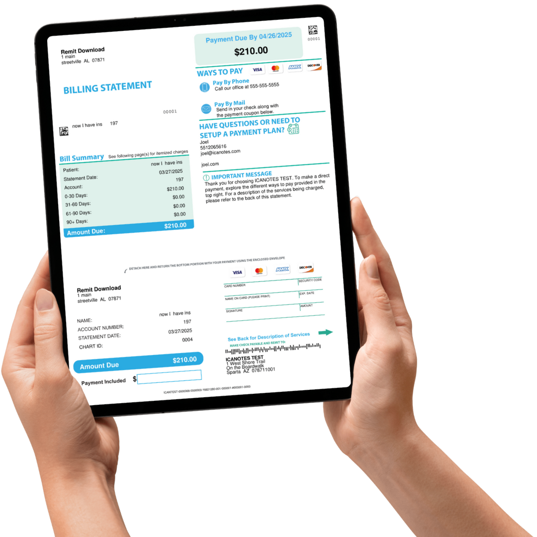 Whether you manage billing in-house or outsource it, the ICANotes Patient Statements feature gives you more control, more flexibility, and fewer administrative headaches. Contact our team at 866-847-3590 to learn how to enable this feature in your account or to explore our integrated Revenue Cycle Management solutions.